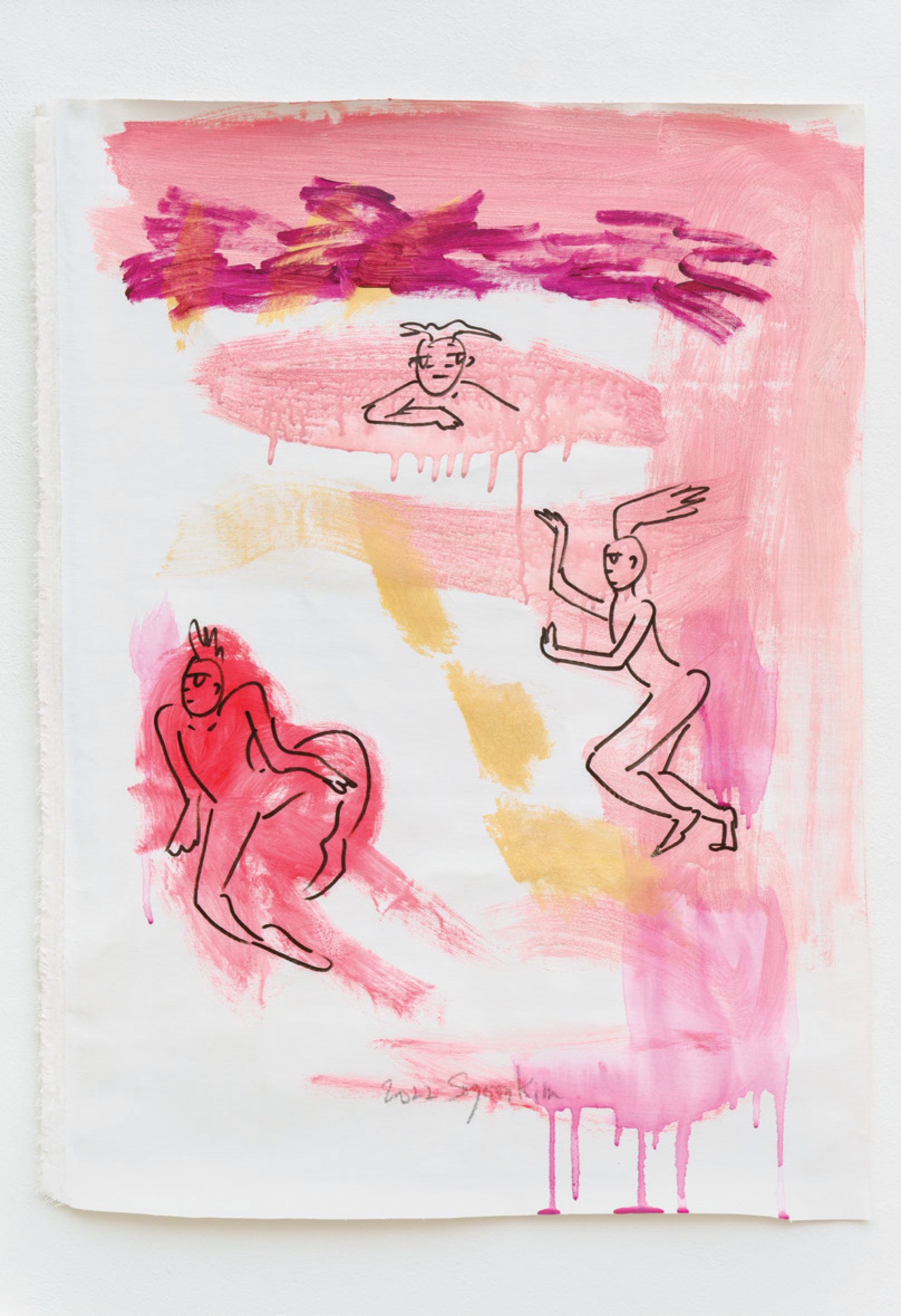 학습된 편견이나 기술을 극복하는 방법도 속도에 달려 있다. “잘 그린 그림을 그리려는 게 아니라 나다운 거, 내 세계를 표현하려고 그림을 그리는 건데, 잘 그려야 된다, 라는 것은 옛날부터 배워온 거잖아요. 그래서 그것과 계속 싸우고 있는데 그 싸움이 일어나기 전에 빨리 확 질러야 되는 거죠. 그래서 저는 그림 그릴 때 투쟁적인 에너지가 좀 있어요. 빨리 그려서 최대한 날것을 좀 꺼내려고.”