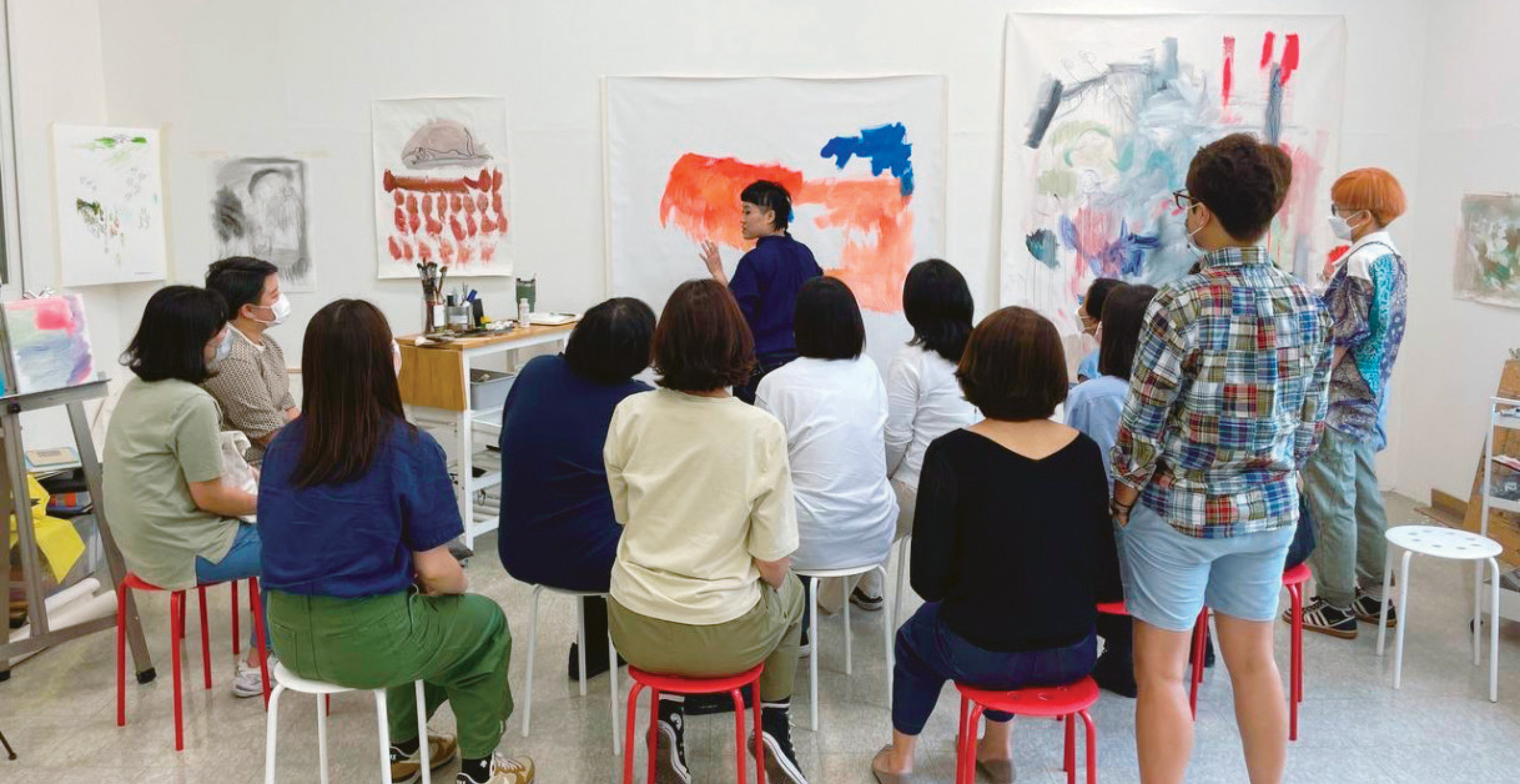 “국립현대미술관 같은 데서 작가가 막 드로잉하고 있는데 ‘물감 얼마예요?’라고 물으면 되게 나쁜 질문이라고 생각할 수 있는데 만약 그게 어떤 디딤돌이 될 수 있다면 어떨까요. 저는 지금도 되게 뿌듯할 때가, 방송을 보던 사람들이 현대미술 이런 거 하나도 모르는데도 이반지하 드로잉 토크쇼에 오는 거예요. 또는 그림에 관심 없고 책만 읽던 람들이 이반지하 전시에 오는 거. 장르 간의 관객을 섞어버리는 것이 앞으로도 하고 싶은 것이고 되게 중요한 가능성이라고 생각해요.”