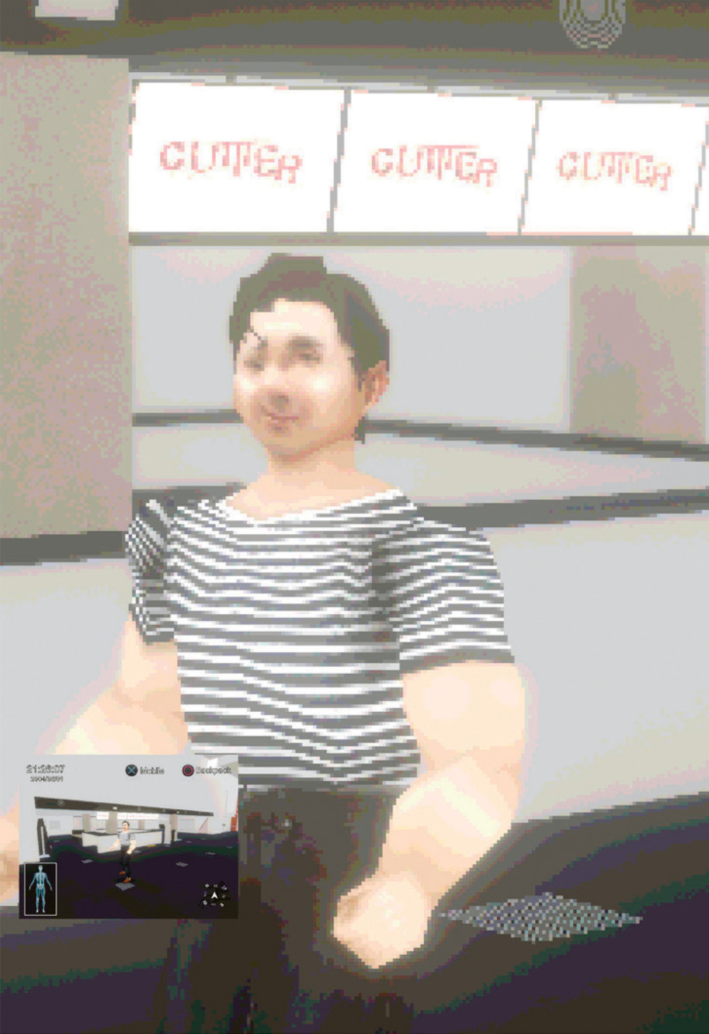 전시 안에서 수많은 게임은 사회와 새로운 방식으로 접촉하거나 서로를 인식한다. 예컨대 김희천 작가의 〈커터 3〉은 현실과 가상 사이를 잇는 과정에서 개입된 기술이 갖는 문제점을 짚는다. 이 작품은 국립현대미술관 서울관이 배경인 게임을 플레이하는 영상이다. 관객은 끊임없이 현실의 나와 게임 비디오 속의 인물, 실제로 발 딛고 있는 국립현대미술관과 작품 안의 국립현대미술관을 비교한다. 게임 안에서의 존재는 수많은 옵션으로 이루어져 있다. 그렇다면 ‘현실 안’에서 ‘게임 밖’의 상황을 상상하고 제시할 수 있는가? 작품이 던지는 물음은 ‘우리보다 더 구체적인 존재로서의 우리’를 가리킨다. 비현실, 혹은 가상 세계, 게임으로서 구현되고 설명될 수 있는 어떠한 차원은 이미 현실이 된 지 오래다. 그것이 사회의 어느 부분을 확장하고, 이식하며, 지배하거나 지배당하기 때문이다. 때로는 더 구체적인 게임 속 존재의 그래픽이 이질적으로 부서진다는 점이 재미있다. 게임-미술 작품들은 불완전한 그래픽과 현실의 사진, 푸티지를 교차시키며 현실과 가상, 존재와 비존재, 리얼타임과 이미지 사이를 넘나든다.