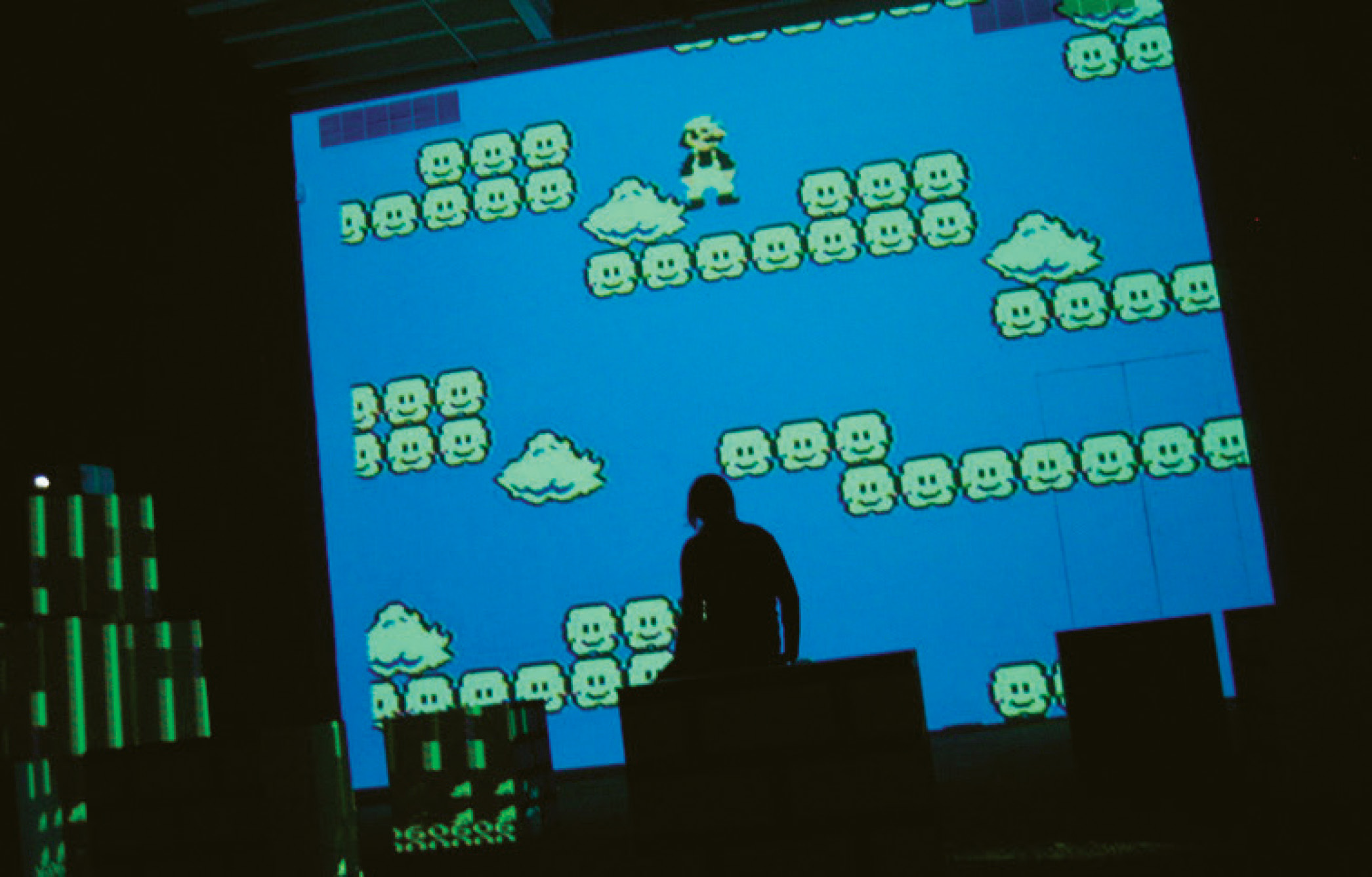 코리 아칸젤과 페이퍼 라드의 〈슈퍼 마리오 무비〉는 닌텐도 사의 게임 ‘슈퍼 마리오 브라더스’의 화면과 사운드를 해체하고 재조립한다. 세대와 지역에 무관하게 모두가 알고 있는 게임을 재료로 사용함으로써 새로운 서사와 영화적 구조를 생성한다. 낯설다. 익숙한 멜로디는 변주되었고 친근한 마리오는 예상 밖의 움직임을 한다. 방황한다. 혼잡스럽게 섞이는 노이즈 음악과 그래픽은 불편하다. ‘슈퍼 마리오 브라더스’의 카트리지를 해킹했다는 제작 과정의 비하인드는 불편함을 완성한다. 해킹, 예상되지 않은 그래픽과 움직임, 변주된 멜로디와 노이즈는 익숙한 ‘마리오’를 비튼다. 이것은 더 이상 유쾌하고 편안한 게임이 아니다.