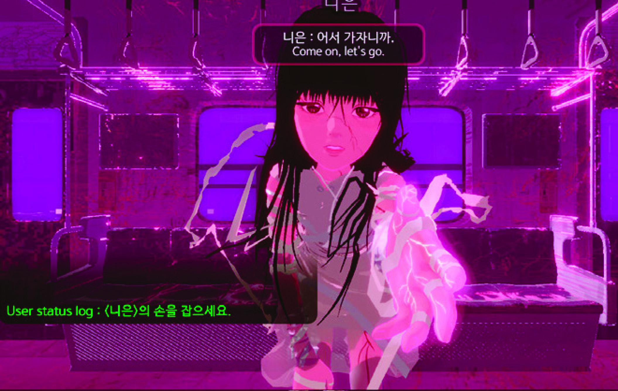 관객은 ‘게임을 플레이하는 영상’을 서울박스 중앙에 놓인 빈백에 누워 편하게 관람한다. 마치 자신의 방 안에서 편하게 직접 게임을 하거나 플레이 영상을 보듯. 이러한 일상적 행위를 연상시키는 형식은 여가와 관람, 방 안과 미술관, 현실과 게임, 예술과 사회와 같은 엇갈리고 맞물리며 때로는 평행한 두 시간선을 넘나들게 한다.