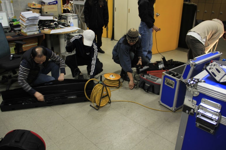 학교 워크샵 촬영을 위해서 장비를 대여하는 팀이 도착한 건데요.