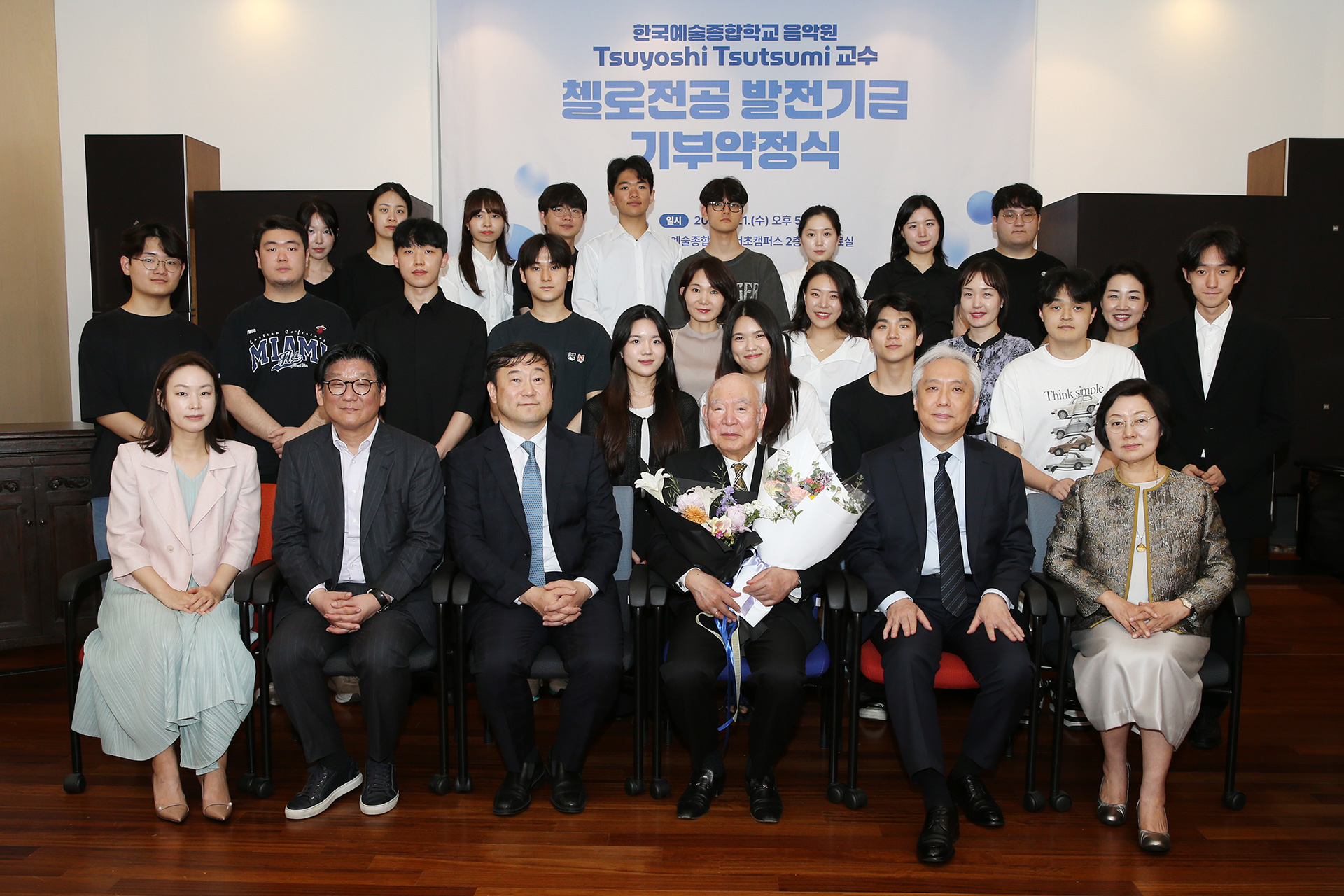 이날 기부약정식에는 한예종 김대진 총장, 음악원 이강호 원장, 이예린 부원장, 기악과 교수들을 비롯 첼로전공 학생들과 학부모들이 함께 참석하여 츠요시 츠츠미 교수에게 감사한 마음을 전하는 뜻깊은 자리로 진행됐다.